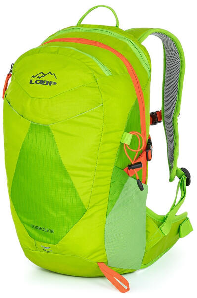 A Loap Torbole egy túra hátizsák, amely nagyon tartós és erős Ripstop anyagból készült. Ez az anyag megakadályozza a kopást és a szakadást. A Loap kisebb méretű Torbole 18 túrahátizsákja beépített esővédővel 18 literes térfogattal és 6 kilogramm teherbírással rendelkezik. A masszív SBS hátrendszer kényelmes illeszkedést biztosít, és megbízhatóan védi a tartalmat. A hátizsák nagyon tartós és erős Ripstop anyagból készült, amely megakadályozza a kopást. A könnyű , kétkamrás hátizsák egy fő cipzárral ellátott, fedéllel ellátott fő cipzárral rendelkezik, és a tetején töltődik. Négy külső zseb és egy belső zseb van hidrovákuumos rekesszel. A vállpántok anatómiailag formázottak. A hátat derékszíj, oldalsó kompressziós pántok és csúszó mellkasi kuplung is tehermentesíti. A hátizsák fényvisszaverő elemeket is tartalmaz. A kényelmes hátizsák méretei (magasság × szélesség × mélység) 47 × 22 × 16 cm, súlya pedig 550 gramm. Nemcsak túrázáshoz és kerékpáros kirándulásokhoz, hanem utazási hátizsákként is alkalmas.