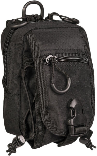Hatszögletű Mil-Tec HEXTAC övtáska fekete poliészter színben, PVC bevonattal és EVA habbéléssel. Kompatibilis a MOLLE rendszerrel, bárhova felszerelhető.