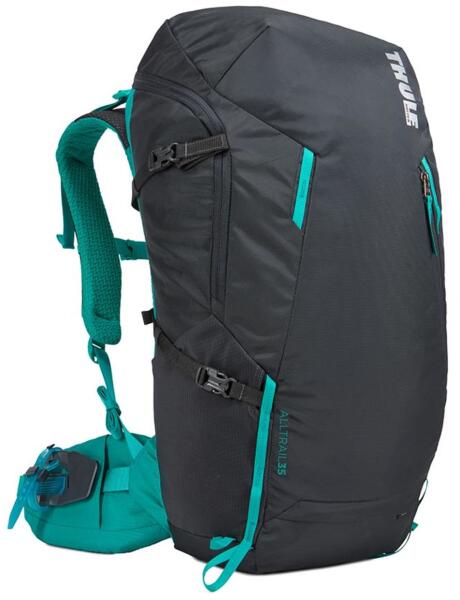 A fekete Thule Alltrail (3203539) női túrahátizsák 35 literes űrtartalommal rendelkezik. Sokoldalú, mindenre kiterjedő és praktikus.   A türkizkék színű, lélegző pántok és hevederek méretét hölgyekhez igazították, mindemellett a hát- és vállrendszer 10 cm-es skálán állítható a tökéletesen kényelmes viselet érdekében. A kényelmes tehát nem extra, hanem alapfelszereltség - még akkor is, ha jól megpakoltad a hátizsákot. A táska űrtartalma a külső-oldalsó csattokkal állítható, hogy minden úgy érkezzen meg, ahogy bepakolad. Külön rekesz áll rendelkezésedre a víztasaknak, a tömlőnek pedig speciális kivezetés és gumis vezetőpántok találhatók, illetve oldalt két palacktartó zseb is segít a hidratáltságban. Túrafelszerelésed, mint például jégcsákány vagy túrabot könnyedén rögzíthető a kifejezetten erre a célra kialakított pántokkal. Extraként ajánljuk hozzá a praktikus VersaClick kiegészítő rendszert, mellyel további személyre szabható zsebek és kényelmi funkciók válnak elérhetővé.